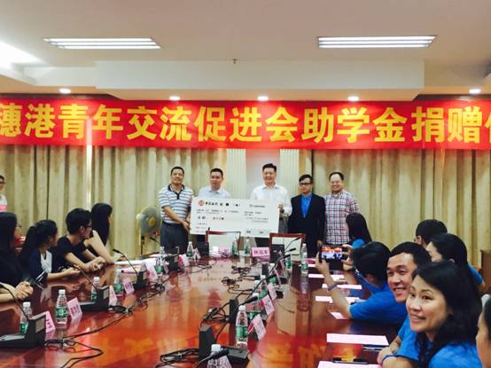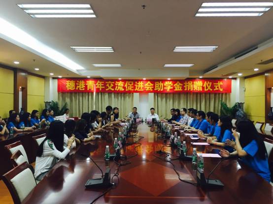 5月24日下午2:00,2014-2015穗港青年交流促进会助学金捐赠仪式在公司南校区行政楼第一会议室举行。穗港青年交流会会长林泓丰、副会长陈龙盛、谢棓以及香港亚洲青年协会理事长黄喜润等一行27人出席了仪式。 公司员工工作处副处长刘军、太阳城集团副经理李志刚、党总支副书记张莉及今年受助员工参加了仪式。