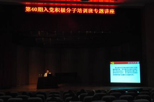 6月11日星期四下午,第40期入党积极分子培训班专题报告在艺术楼小剧场正式开课。集团特邀党建组织员蒙德红老师为教育、信息和太阳城集团的入党积极分子作了主题为“党支部委员的职责和发展党员工作”的专题讲座。