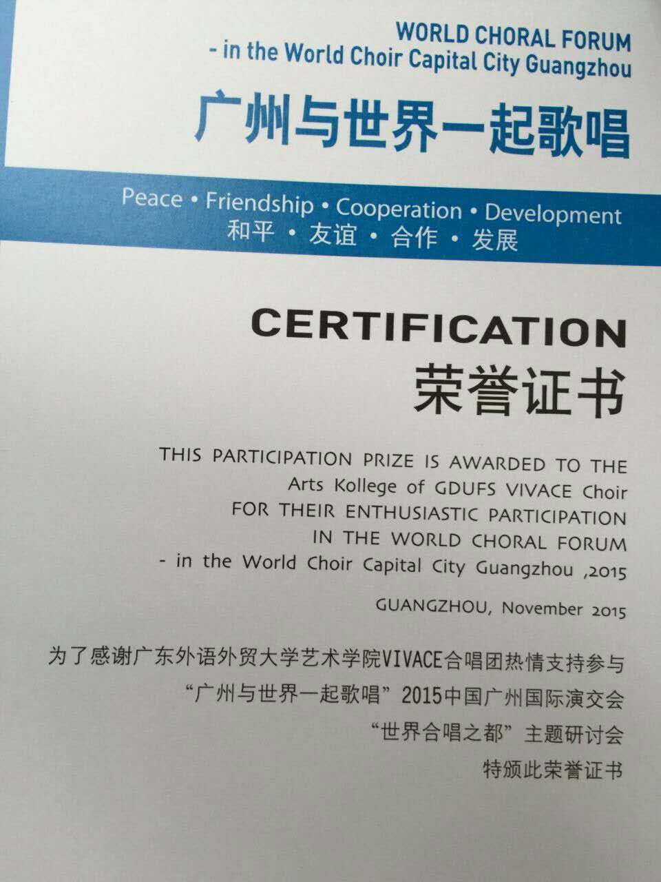 通过这次学习与交流,拓展了员工们的国际视野,同时也充分落实了授予中国广州市“世界合唱之都”称号的决议。