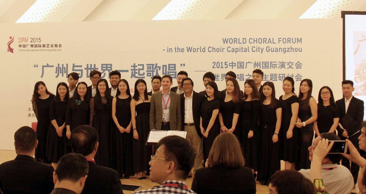 11月10日,公司Vivace合唱团应德国文化交流基金会的邀请,参加了中国广州国际演交会世界合唱之都主题研讨会。本次活动由广州市文化广电新闻出版局主办,德国文化交流基金会与中国广州大剧院共同承办。此次活动主题为“广州与世界一起唱”——世界合唱之都主题研讨会。参与本次研讨会的有来至德国、瑞典、英国等国家的合唱指挥专家与会,其中最著名的是世界顶级合唱团,来至英国的国王合唱团原主唱保罗·菲利柯斯。