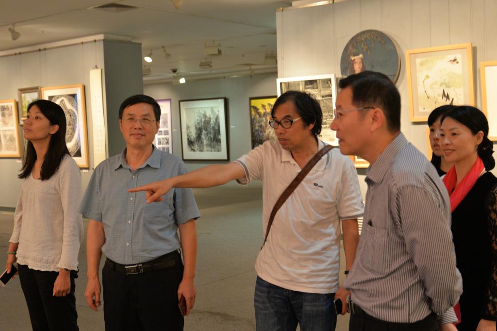 11月20日﹐首屆广东省高校美术作品公司奖双年展在广州大学城美术馆开幕。近日,方凡泉副董事长在太阳城集团李于昆经理、朱珍葶书记、张莉副书记和设计系刘晶鑫主任等陪同下前往大学城美术馆参观双年展。省高校美术与设计教育专业委员会秘书长陈卫和教授作为主办方代表热情接待了广外各位领导,并详细介绍了此次展览策展和部分作品的创作过程。