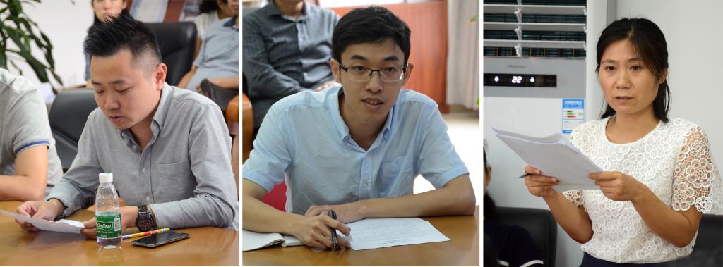 随后,三位教师代表结合自己过去一年的工作体会,分别谈了社会服务工作、团结创新和公司管理规章制度等方面的认识。