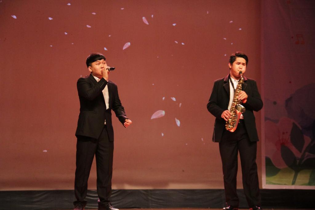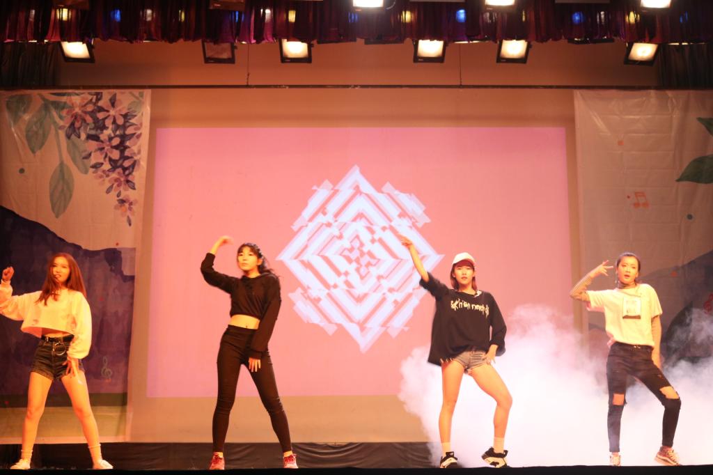 下篇首个节目是2016级舞蹈班全体同学带来的新疆群舞《掀起你的盖头来》,生动再现新疆少男少女的青春生活片段,得到了全场观众雷鸣般的掌声。紧接着,音乐表演1301班赵乐培、1601班欧阳静纯同学演唱的歌曲《眼鼻嘴》,用中韩双语演唱这首韩国歌曲,现场观众用手机打出点点星光,沉浸其中。2014级艺术管理班带来的舞蹈《艺管大召集》则引爆了全场。尽管平时做幕后工作,但在舞台上的艺管人同样也是魅力四射。