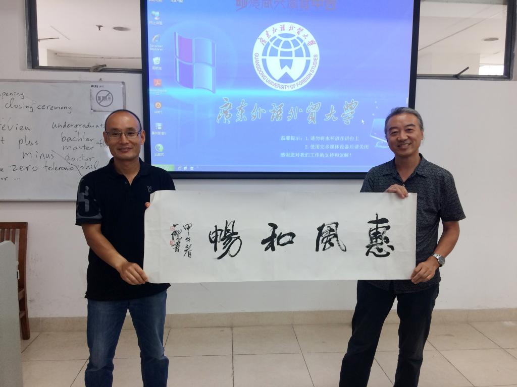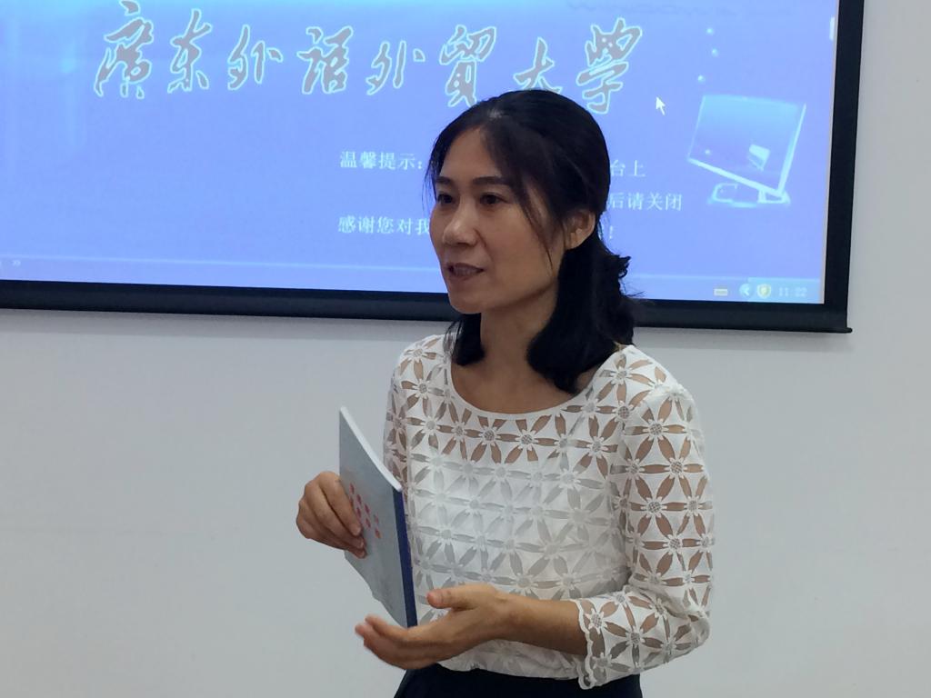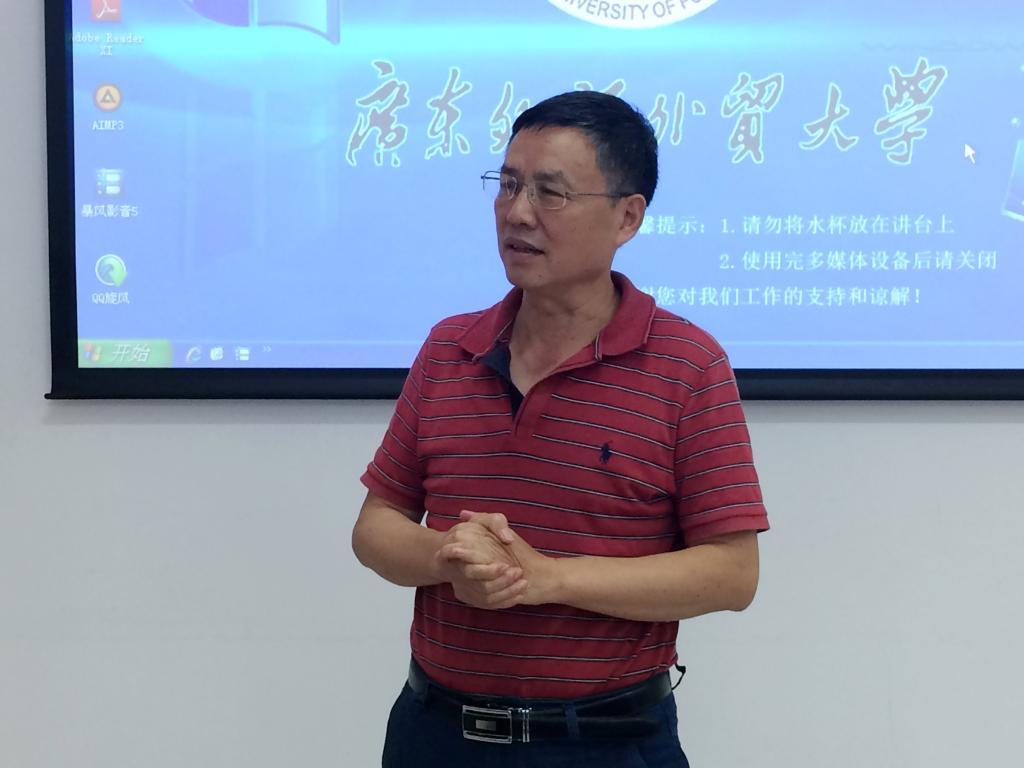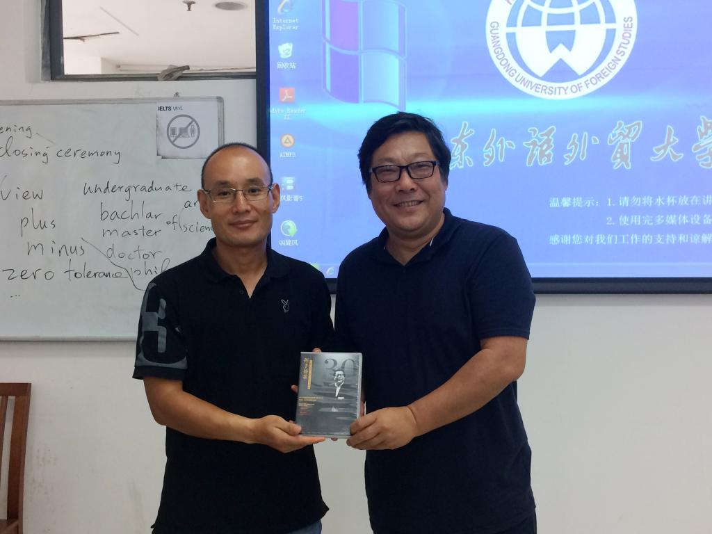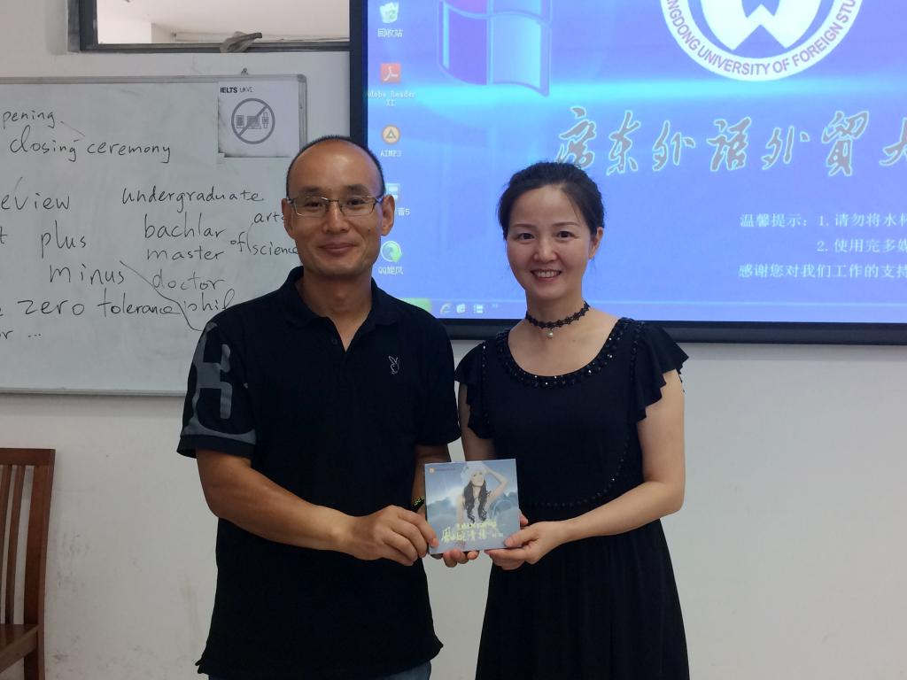 音乐表演系主任杨健生老师作为学员代表发言,感谢任课老师崔华为培训班作出的贡献,对不同专业和层面的老师都有所兼顾,不仅扩大了知识面,也锻炼了口语能力,并表示在日后继续努力学习,提高英语水平。