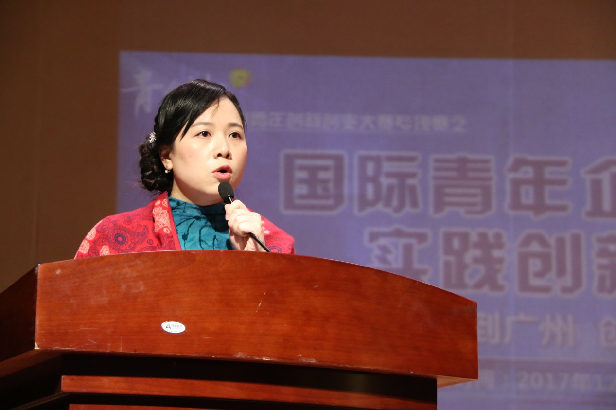 广州市青创中心 青创导师、国际青年企业管理实践创新大赛组委会主任、中大咨询总监谢子凤女士介绍本次大赛项目